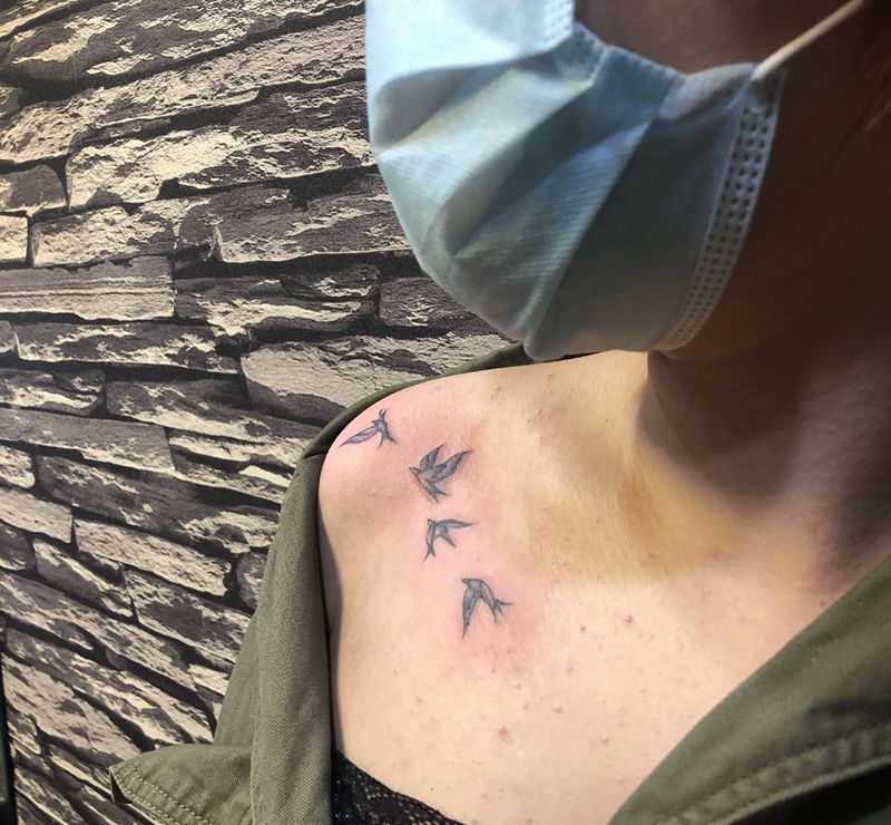 飞燕纹身图片_胸部点刺水墨纹身图案