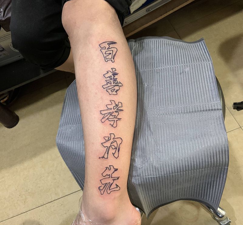 当前位置: 首页 >广东省中山市纹身店-吉刺青纹身图案>百善孝为先纹身图片_手臂花体字纹身图案