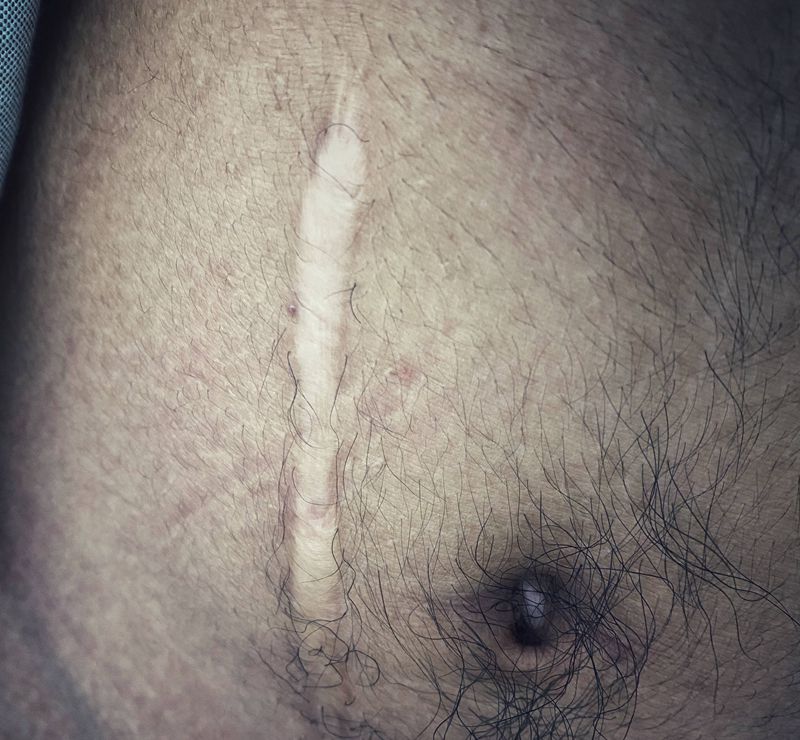 椰树盖疤痕纹身图片_腹部水墨纹身图案