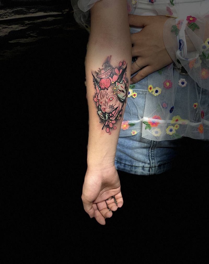 当前位置: 首页 >广东省中山市纹身店-吉刺青纹身图案>司芬克斯纹身图片_手臂水彩欧美写实纹身图案
