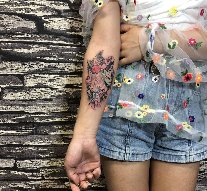当前位置: 首页 >广东省中山市纹身店-吉刺青纹身图案>司芬克斯纹身图片_手臂水彩欧美写实纹身图案