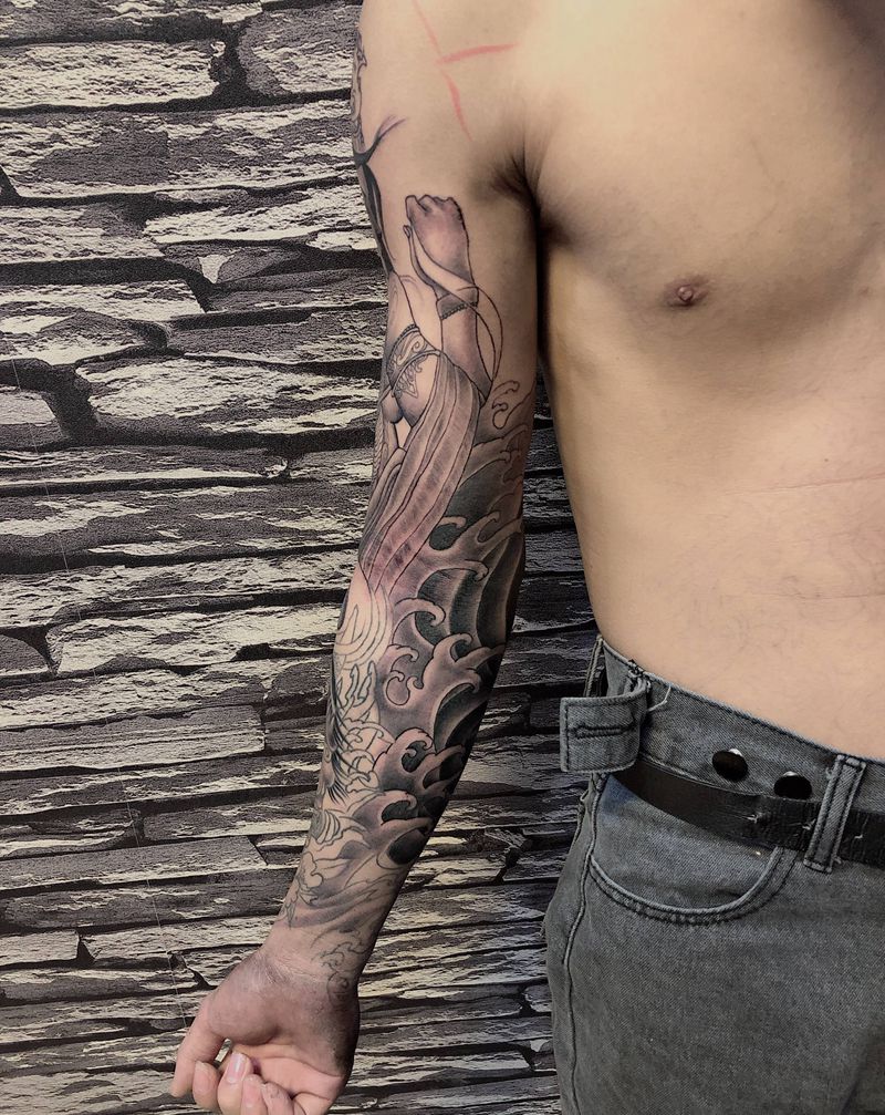 当前位置: 首页 >广东省中山市纹身店-吉刺青纹身图案>花臂添加纹身图片_手臂新传统纹身图案