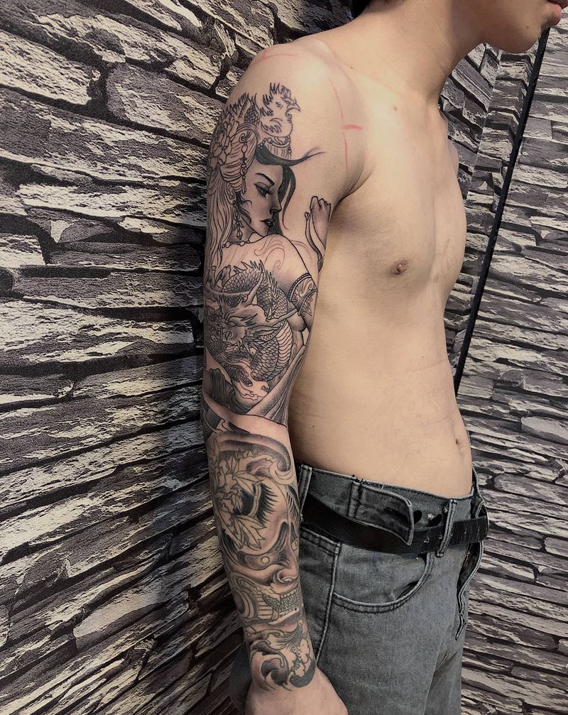 当前位置: 首页 >广东省中山市纹身店-吉刺青纹身图案>花臂添加纹身图片_手臂新传统纹身图案