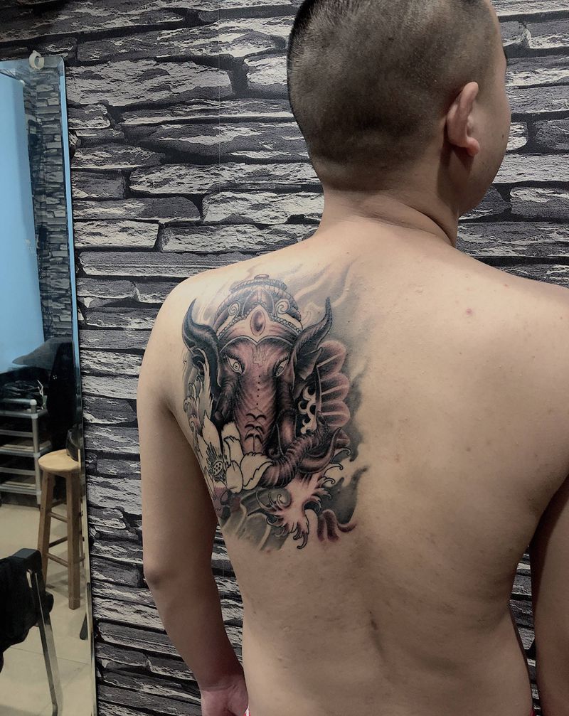 当前位置: 首页 >广东省中山市纹身店-吉刺青纹身图案>象神黑灰完成纹身图片_背部新传统纹身图案