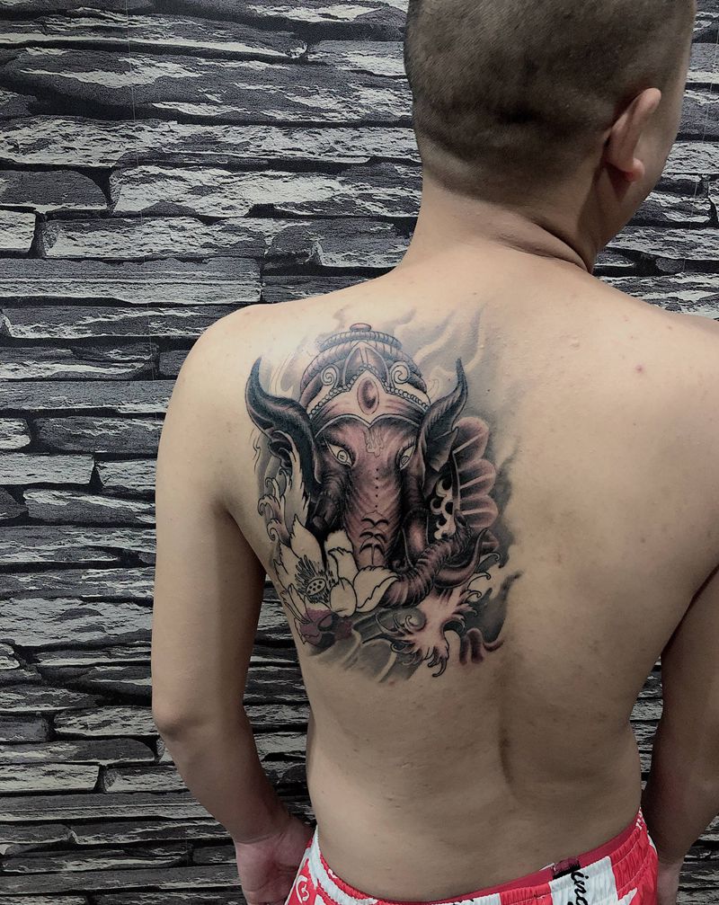 当前位置: 首页 >广东省中山市纹身店-吉刺青纹身图案>象神黑灰完成纹身图片_背部新传统纹身图案