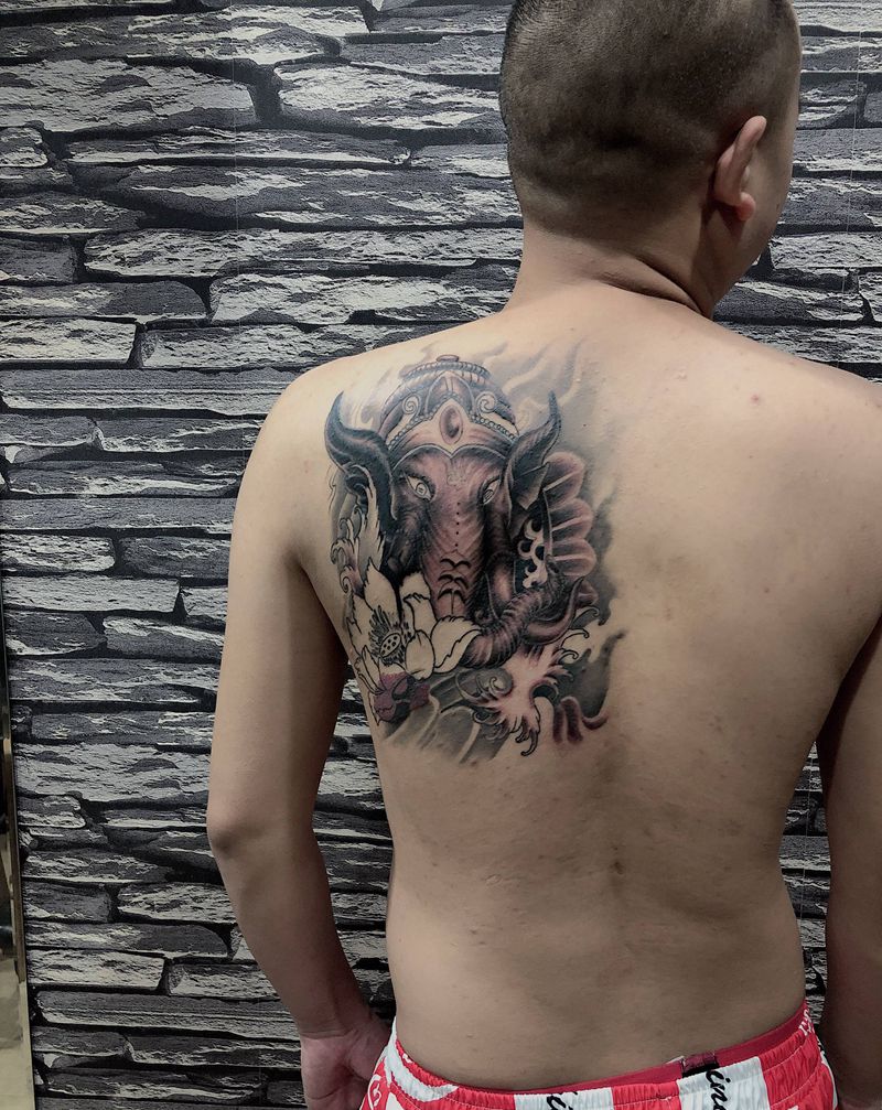 当前位置: 首页 >广东省中山市纹身店-吉刺青纹身图案>象神黑灰完成纹身图片_背部新传统纹身图案