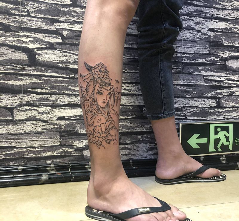 当前位置: 首页 >广东省中山市纹身店-吉刺青纹身图案>艺妓线条纹身图片_腿部新传统纹身图案