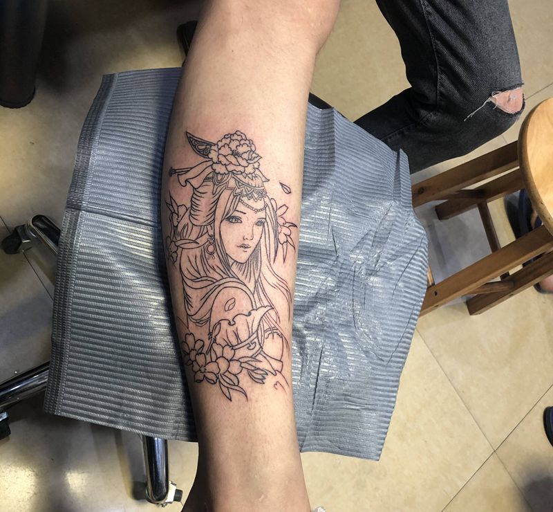 当前位置: 首页 >广东省中山市纹身店-吉刺青纹身图案>艺妓线条纹身图片_腿部新传统纹身图案