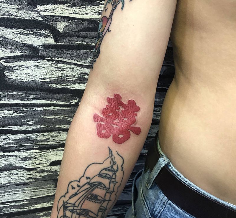 喜喜纹身图片_手部水彩纹身图案