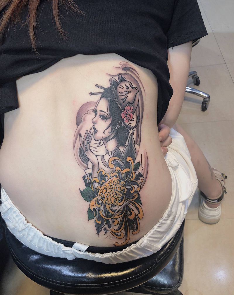 当前位置: 首页 >广东省中山市纹身店-吉刺青纹身图案>美女遮盖旧文身纹身图片_腰部水彩欧美写实纹身图案