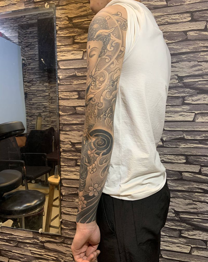 当前位置: 首页 >广东省中山市纹身店-吉刺青纹身图案>佛与美女组合花臂纹身图片_手臂新传统纹身图案
