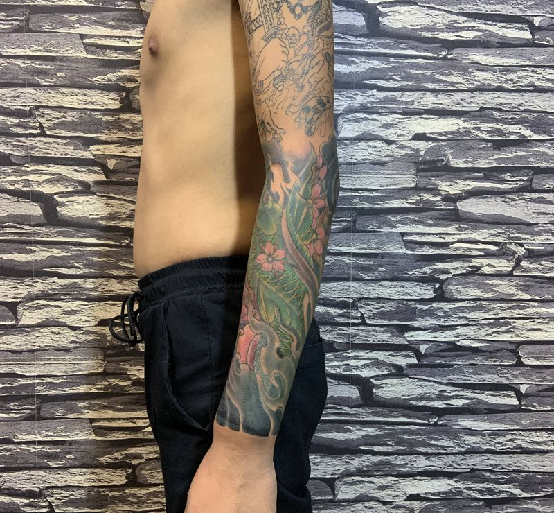 当前位置: 首页 >广东省中山市纹身店-吉刺青纹身图案>鲤鱼纹身图片_手臂新传统纹身图案