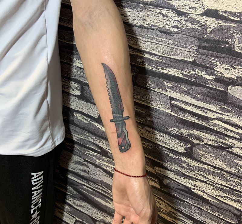 当前位置: 首页 >广东省中山市纹身店-吉刺青纹身图案>匕首遮盖纹身图片_手臂Old School纹身图案