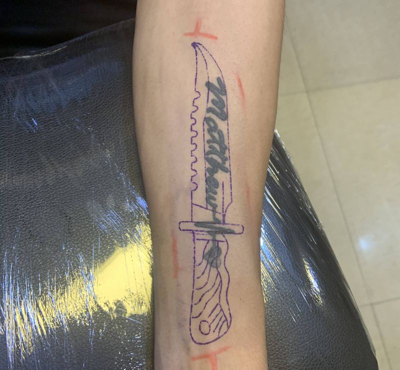 当前位置: 首页 >广东省中山市纹身店-吉刺青纹身图案>匕首遮盖纹身图片_手臂Old School纹身图案