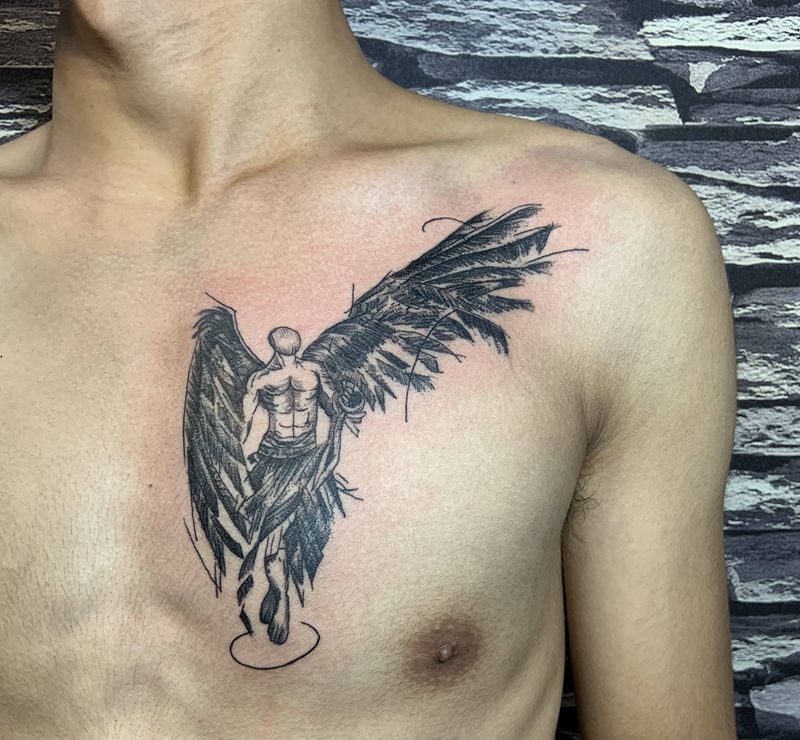 天使之翼纹身图片_胸部欧美写实纹身图案