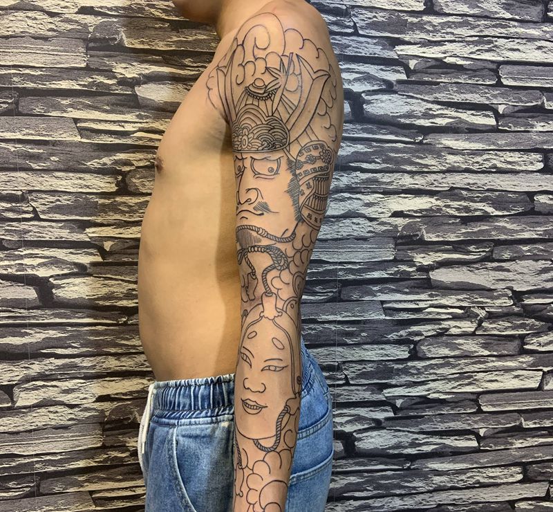 当前位置: 首页 >广东省中山市纹身店-吉刺青纹身图案>武士与能面纹身图片_老传统纹身图案