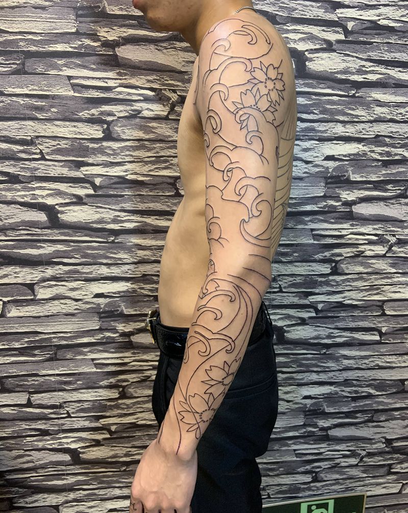 当前位置: 首页 >广东省中山市纹身店-吉刺青纹身图案>老传统花臂线条纹身图片_手臂老传统纹身图案