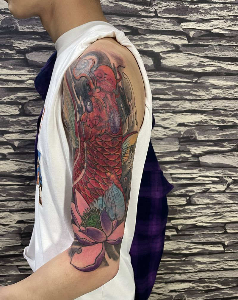 当前位置: 首页 >广东省中山市纹身店-吉刺青纹身图案>鲤鱼遮盖旧纹身纹身图片_手臂新传统纹身图案