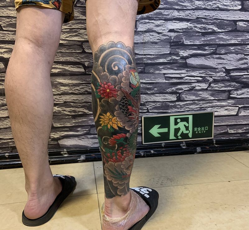 • T网红王老大花腿龙纹身图片_腿部新传统纹身图案