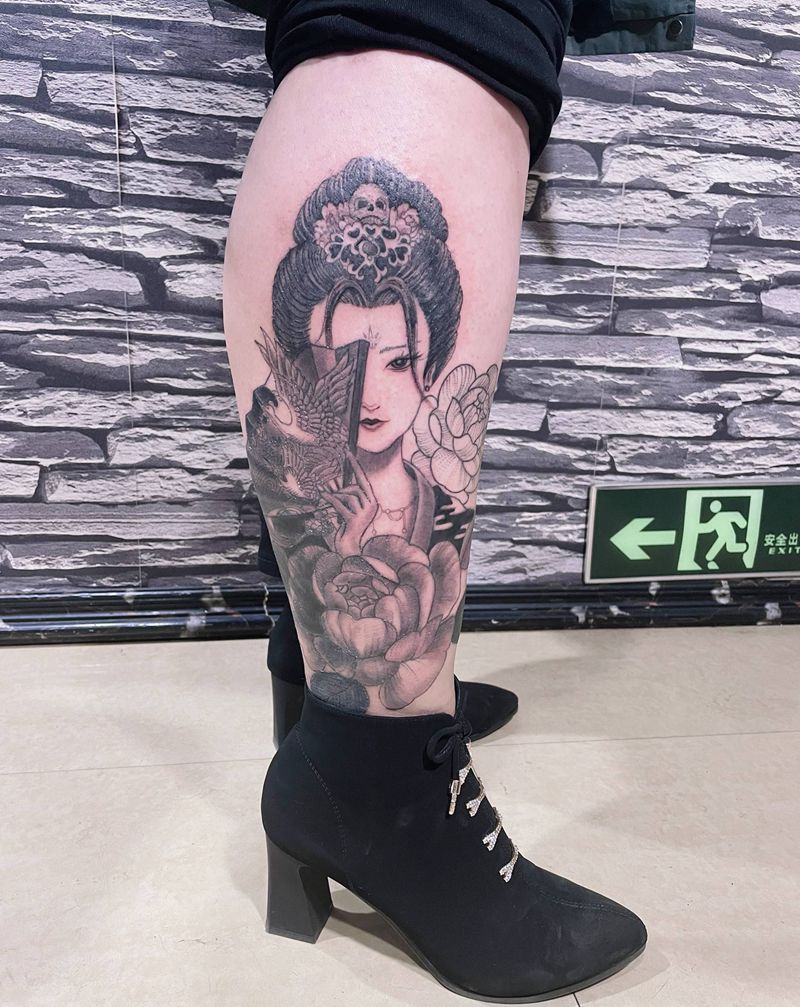 当前位置: 首页 >广东省中山市纹身店-吉刺青纹身图案>紫霞仙子遮盖旧纹身纹身图片_腿部新传统纹身图案