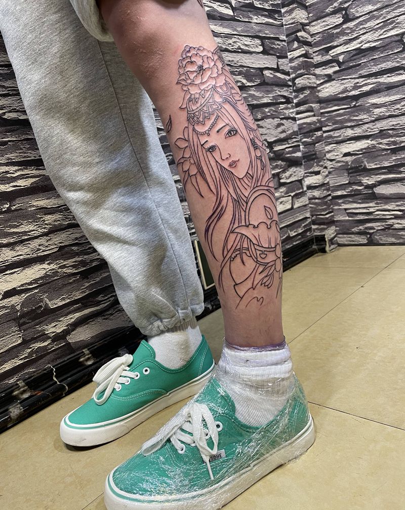 艺妓啊暮纹身图片_腿部新传统纹身图案