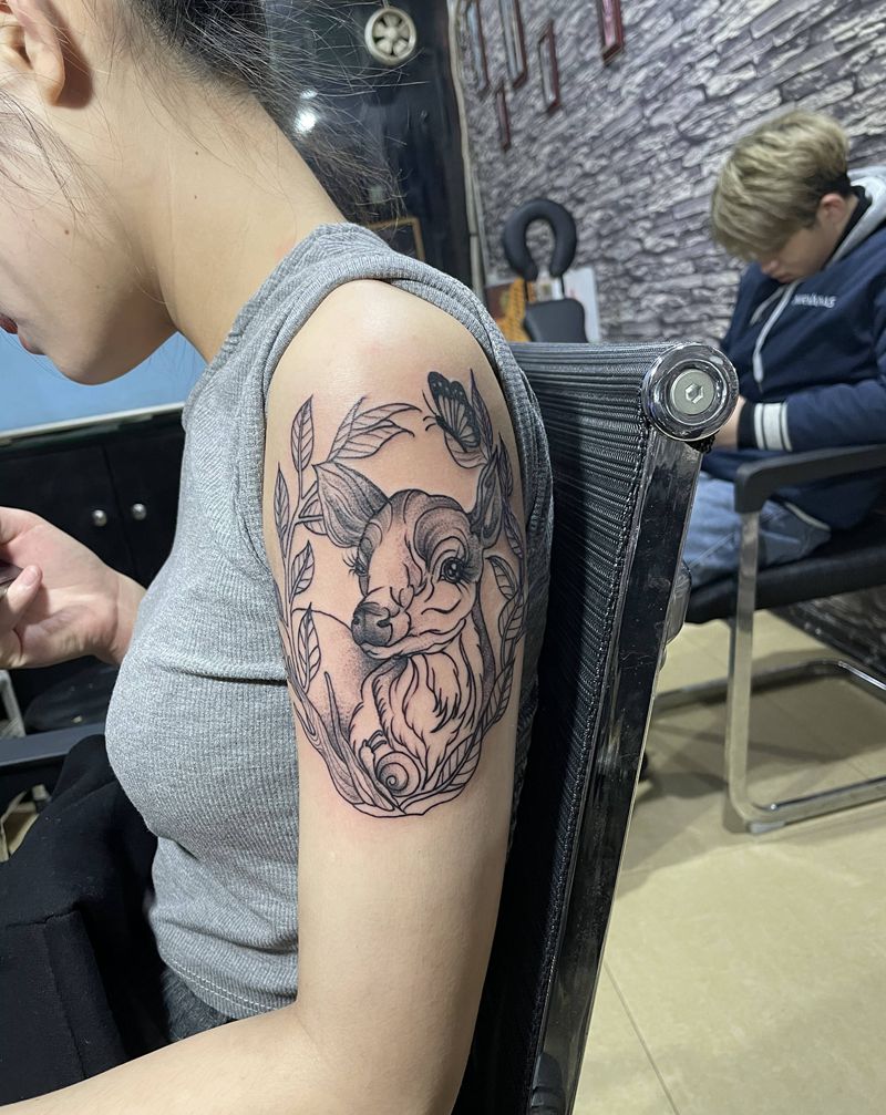 当前位置: 首页 >广东省中山市纹身店-吉刺青纹身图案>小鹿纹身图片_手臂New School水彩纹身图案