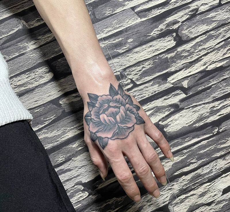 • 手背潮流时尚的玫瑰花眼睛纹身图案