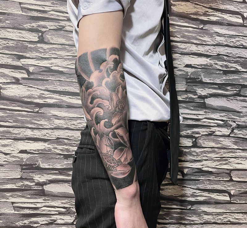 当前位置: 首页 >广东省中山市纹身店-吉刺青纹身图案>自带线条来上色纹身图片_手臂老传统纹身图案