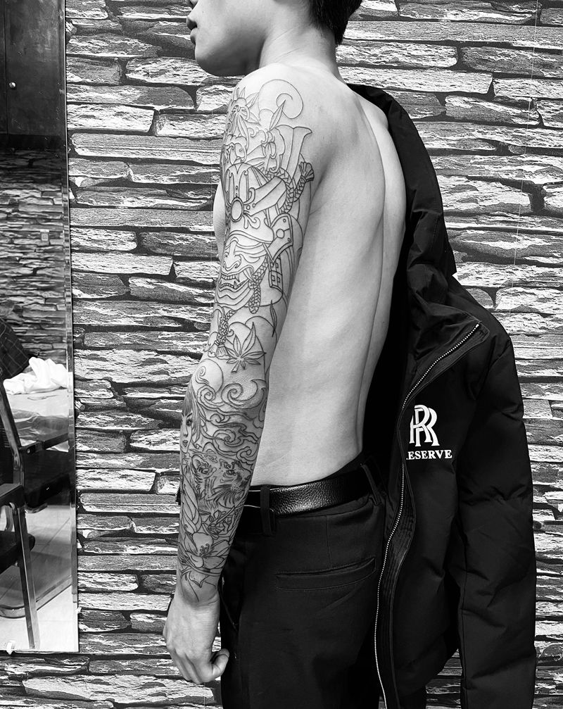 当前位置: 首页 >广东省中山市纹身店-吉刺青纹身图案>鬼武士➕艺妓纹身图片_手臂新传统纹身图案
