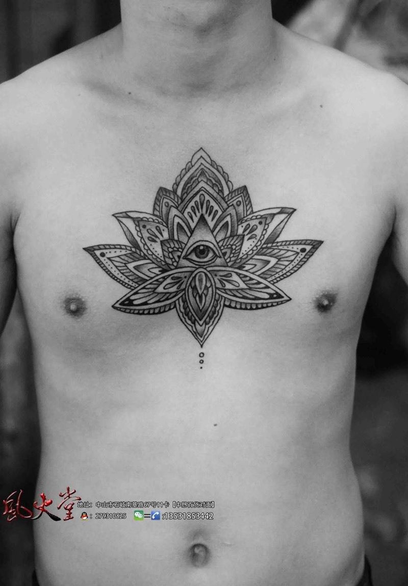 当前位置: 首页 >广东省中山市纹身店-中山风火堂纹身店纹身图案>梵花纹身纹身图片_成品胸部传统几何图腾宗教纹身图案