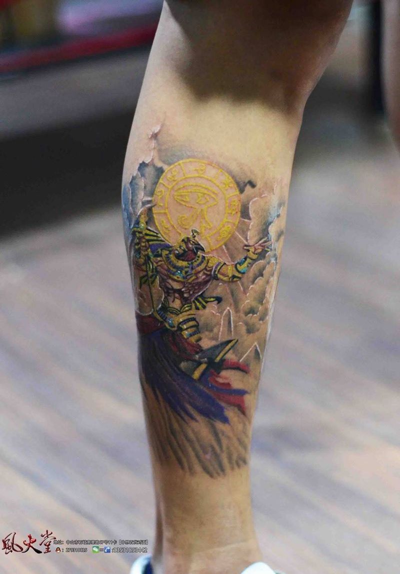 • T包小腿吹火男+阿多福纹身图片_腿部老传统新传统吹火男阿