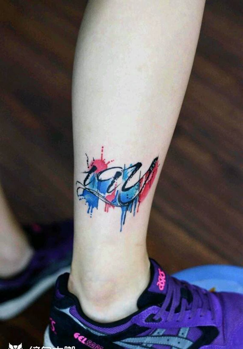 原创水彩英文纹身纹身图片_脚部清新字符成品纹身图案