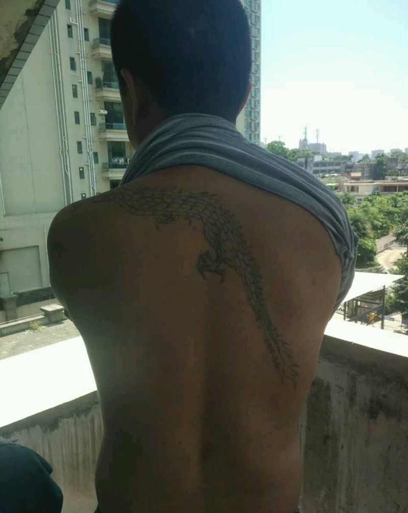 满背龙遮盖纹身纹身图片_背部传统动物鬼神成品纹身图案