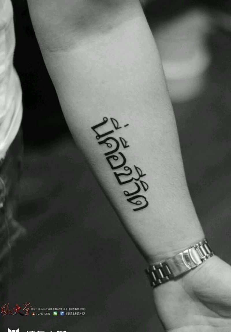 当前位置: 首页 >广东省中山市纹身店-中山风火堂纹身店纹身图案>泰文纹身纹身图片_手臂清新字符成品纹身图案