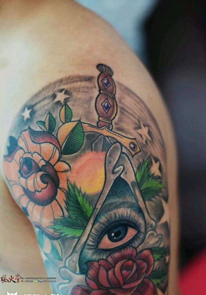 • 纹身吧推荐的披肩图腾半胛纹身图案作品展示