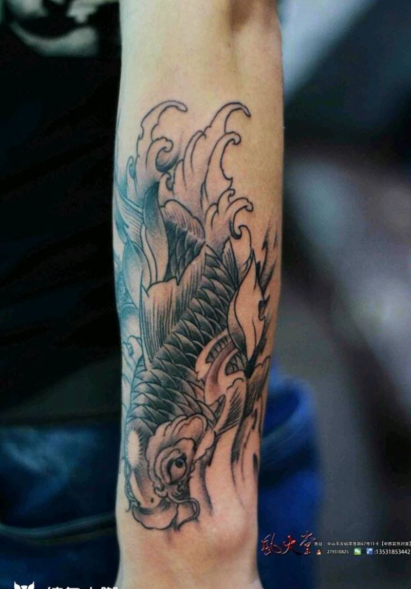 传统鲤鱼纹身纹身图片_手臂传统动物成品纹身图案