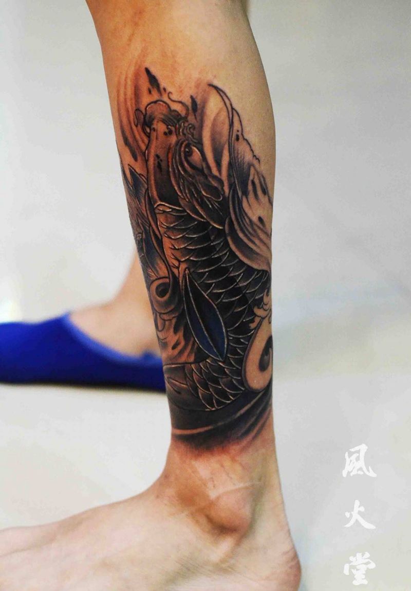纹身遮盖修改当然找中山纹身店#风火堂纹身纹身图片_成品腿部传统动物纹身图案