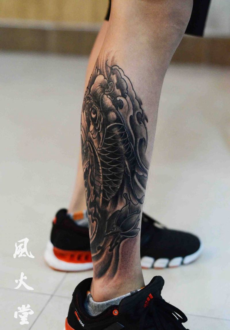 设计鲤鱼遮盖纹身纹身图片_成品腿部传统动物纹身图案