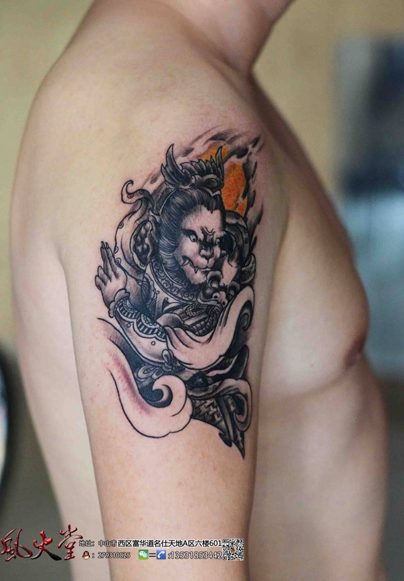 当前位置: 首页 >广东省中山市纹身店-中山风火堂纹身店纹身图案>弼马温纹身图片_成品手臂传统人物纹身图案