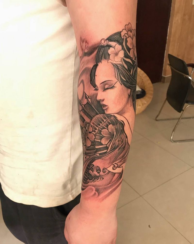艺妓纹身纹身图片_成品手臂传统人物纹身图案