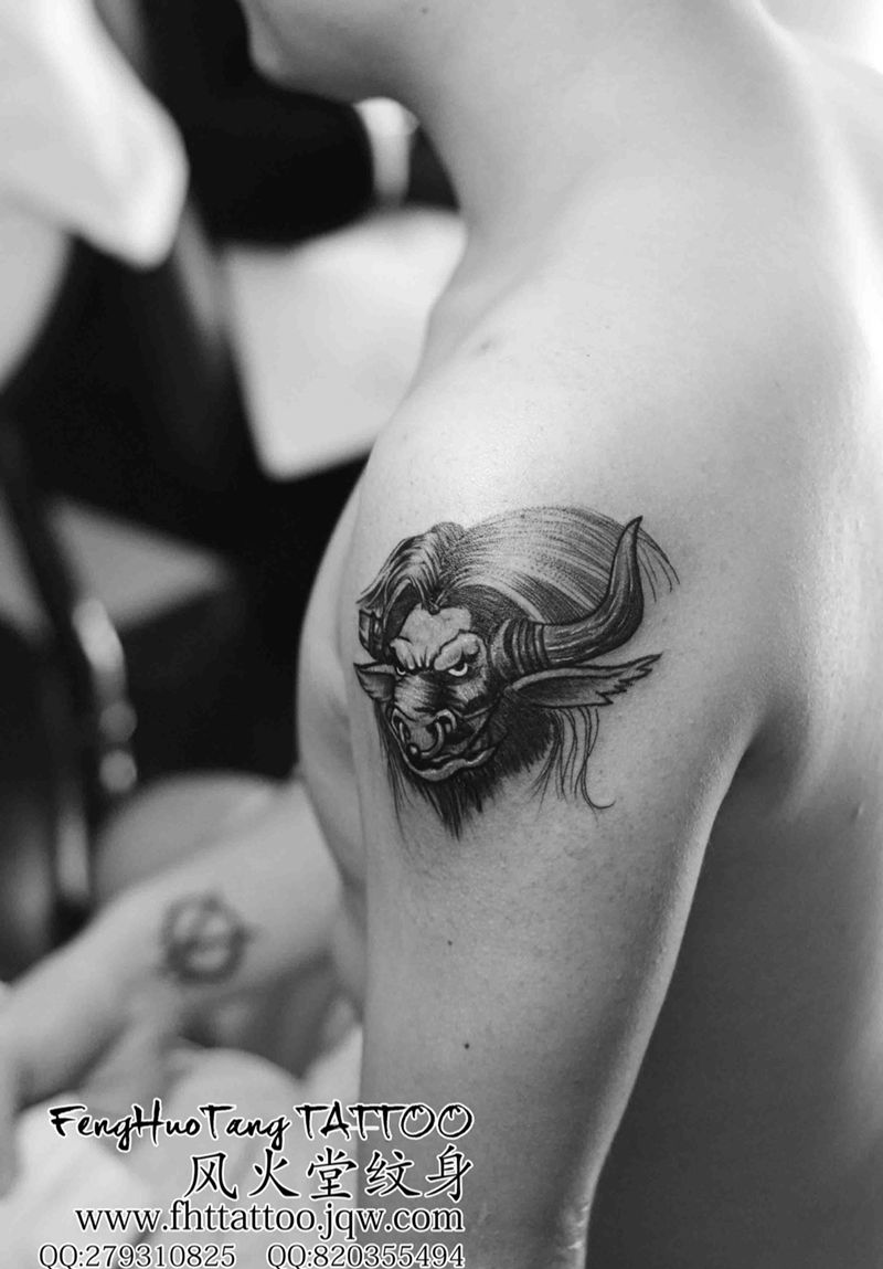 当前位置: 首页 >广东省中山市纹身店-中山风火堂纹身店纹身图案>牛头纹身纹身图片_成品手臂写实动物纹身图案