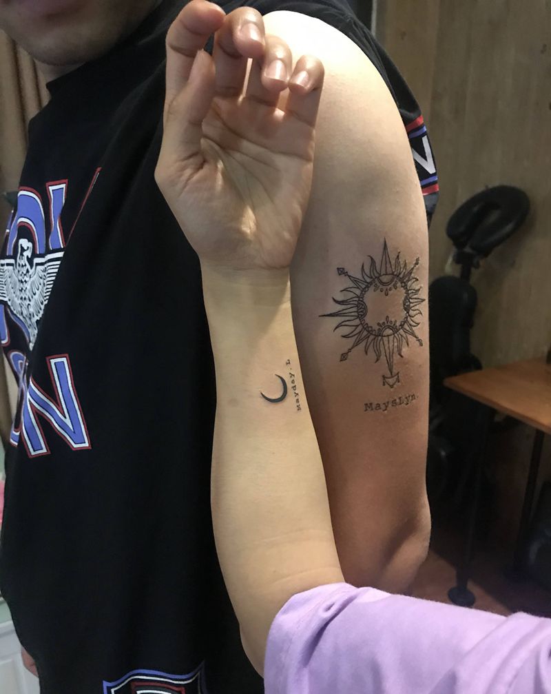 当前位置: 首页 >广东省中山市纹身店-中山风火堂纹身店纹身图案>情侣纹身纹身图片_手臂新传统纹身图案