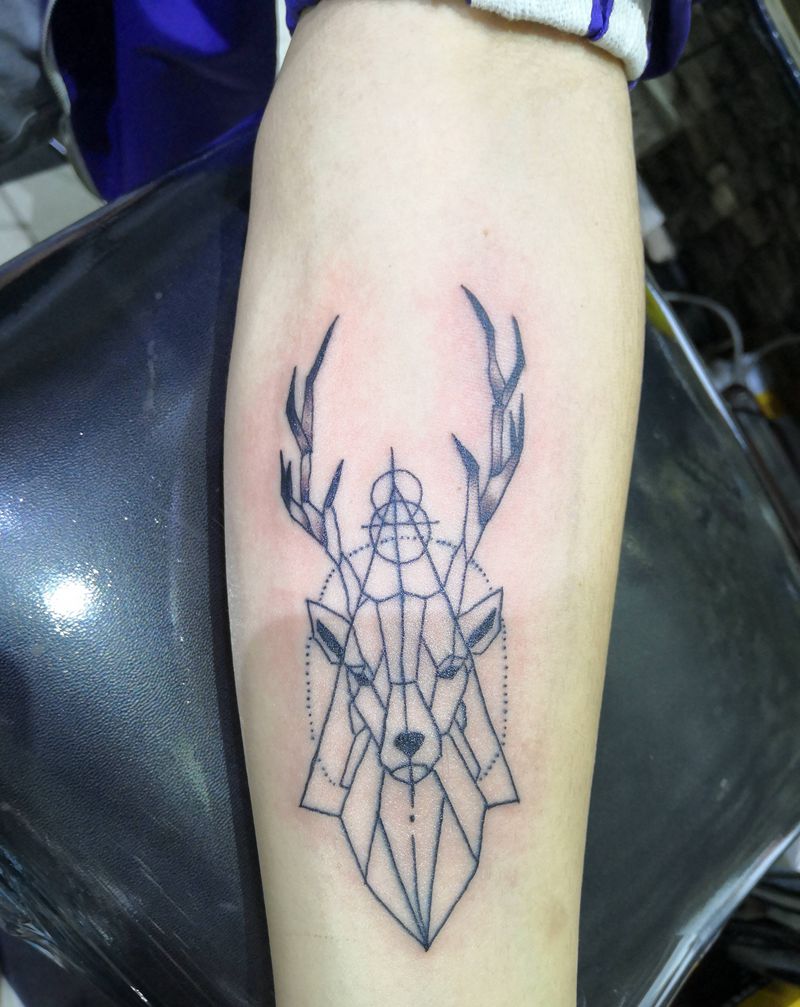 招财鹿纹身图片_手臂手部几何点刺纹身图案
