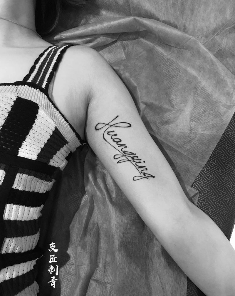 当前位置: 首页 >广东省中山市纹身店-中山风火堂纹身店纹身图案>英文纹身纹身图片_手臂花体字纹身图案