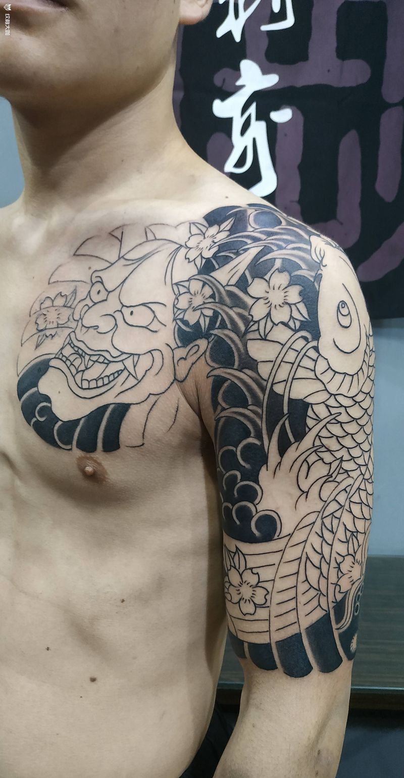 半甲纹身图片_胸部手臂新传统老传统纹身图案