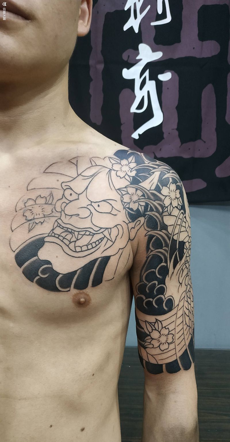 半甲纹身图片_胸部手臂新传统老传统纹身图案