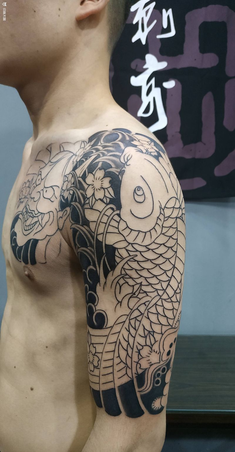 半甲纹身图片_胸部手臂新传统老传统纹身图案