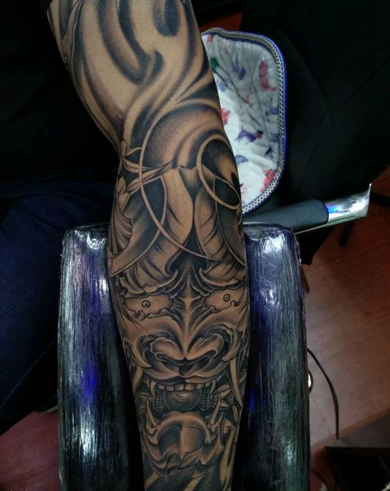 当前位置: 首页 >广东省中山市纹身店-精艺纹身纹身图案>包小臂黑灰般若纹身图片