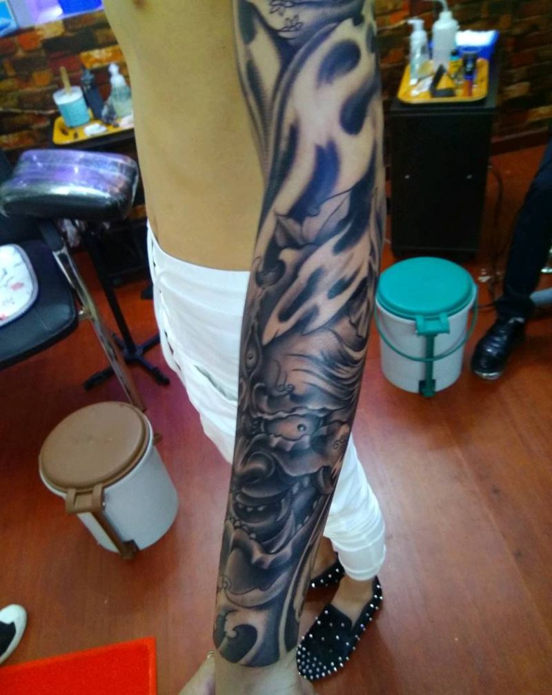 当前位置: 首页 >广东省中山市纹身店-精艺纹身纹身图案>黑灰花臂大臂内侧不算纹身图片