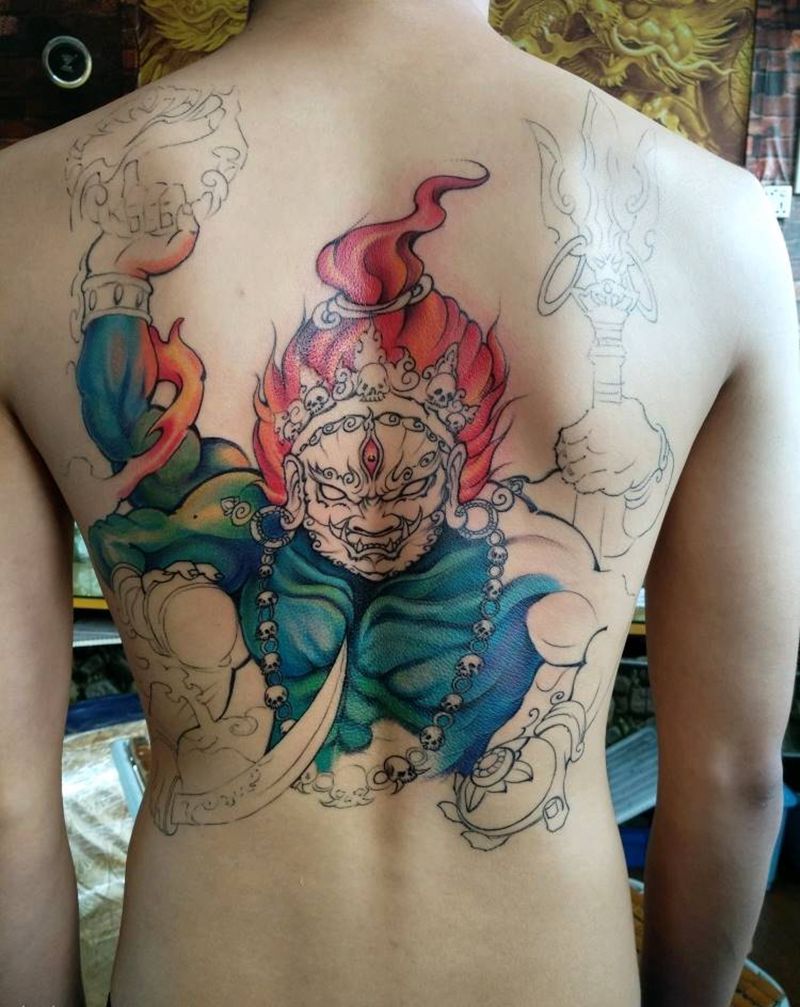 当前位置: 首页 >广东省中山市纹身店-精艺纹身纹身图案>满背未完成纹身图片_颈部背部老传统新传统纹身图案